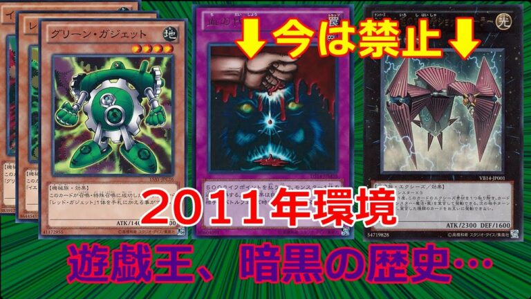 今回は「血の代償」と「ショックルーラー」を採用した代償ガジェットで対戦をします。今はもちろん禁止ですが、当時はこれが3枚ずつ入っていたのが驚きです。