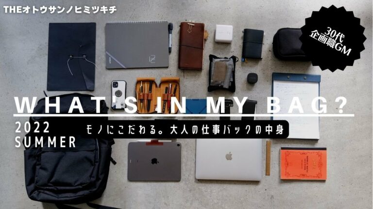 今回は社会人(企画職GM)のカバンの中身2022年夏バージョンです!アップル製品などデジタルガジェットはもちろんですが、タスク管理は変わらずトラベラーズノートなど手帳を愛用しています。デジタル、アナログ共に愛用する仕事の効率化を極めるバッグの中身を紹介します!
