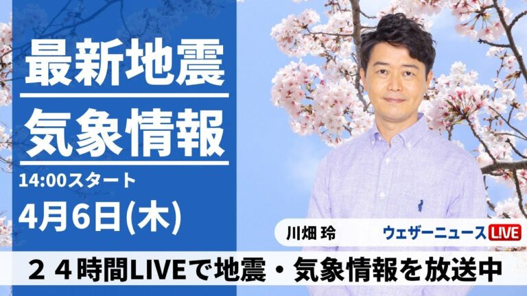 【LIVE】最新気象ニュース・地震情報 2023年4月6日(木) /全国的に曇りや雨 局地的に強く降る所も〈ウェザーニュースLiVEアフタヌーン〉