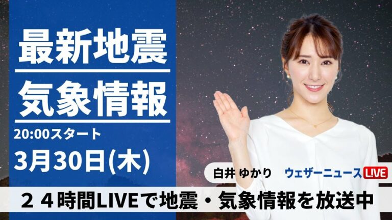 【LIVE】最新気象ニュース・地震情報 2023年3月30日(木) /〈ウェザーニュースLiVEムーン〉