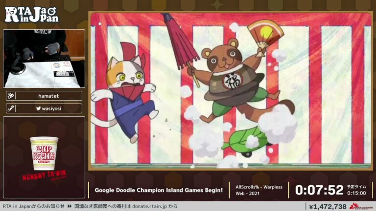 2021/12/26~2021/12/31の間で行われた『RTA in Japan Winter 2021』のGoogle Doodle Champion Island Games Begin!のRTAです。