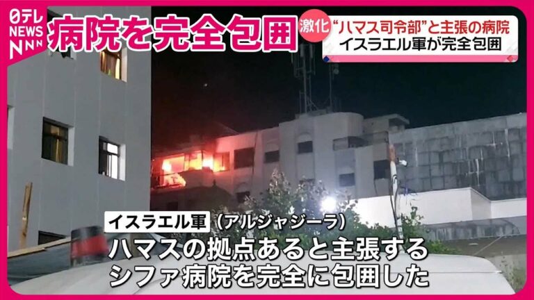 中東の衛星テレビ局アルジャジーラは11日、イスラエル軍がイスラム組織「ハマス」の拠点があると主張するシファ病院を、完全に包囲したと伝えました。病院の中には、数千人の患者や避難民が残されているということです。