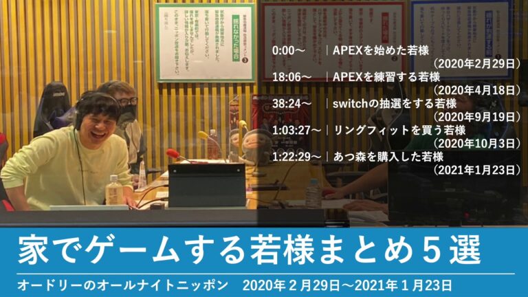 Home » 家でゲームする若様まとめ5選【オードリーのオールナイトニッポン 若林トーク】2020年2月29日〜2021年1月16日