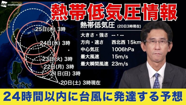 7月20日(土)3時現在、フィリピンの東で発達中の熱帯低気圧について、気象庁は「24時間以内に台風に発達する見込み」と発表しています。
