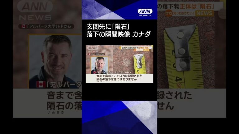 Share Facebook Twitter LinkedIn Pinterest Email カナダの住宅に設置されたインターホンのカメラ映像。高速で何かが落下し、大きな音を立てて地面にたたきつけられました。 落ちてきたのはなんと「隕石(いんせき)」です。 アルバータ大学 クリス・ハード氏 「音まで含めてこのように記録された隕石の落下は他にはありません」 粉々になった隕石は、住民らによって集められ、カナダの大学の研究室で保存されています。 (「グッド!モーニング」2025年1月26日放送分より)