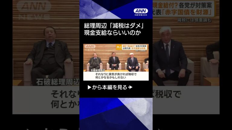 Share Facebook Twitter LinkedIn Pinterest Email 石破総理周辺は「減税」は是が非でも避けたい考えのようです。 総理周辺 「『減税』はしちゃダメだ。まだ『給付』であれば、効果あるかは別にしてワンショットだから補正予算を組んで、それなりに景気が良ければ税収で何とかなるかもしれない。でも『減税』は、下げるのにはエネルギーいらないけど、上げる時にはまた何百倍のエネルギーがかかる」