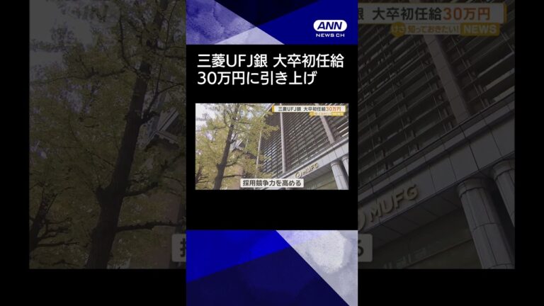 Share Facebook Twitter LinkedIn Pinterest Email 三菱UFJ銀行は、現在25万5000円の大卒初任給を2026年度から4万5000円引き上げ30万円にします。 引き上げは2年ぶりで、初任給を大幅に引き上げることで採用の競争力を高めます。 金融機関では、大手生命保険会社などが相次いで30万円を超える初任給を打ち出しています。 メガバンクでは、すでに三井住友銀行が大卒初任給を30万円に引き上げると発表しています。