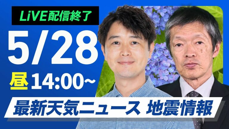 【ライブ配信終了】最新天気ニュース・地震情報 2025年5月28日(水)/北日本や日本海側を中心に晴天〈ウェザーニュースLiVEアフタヌーン・川畑玲/飯島栄一〉