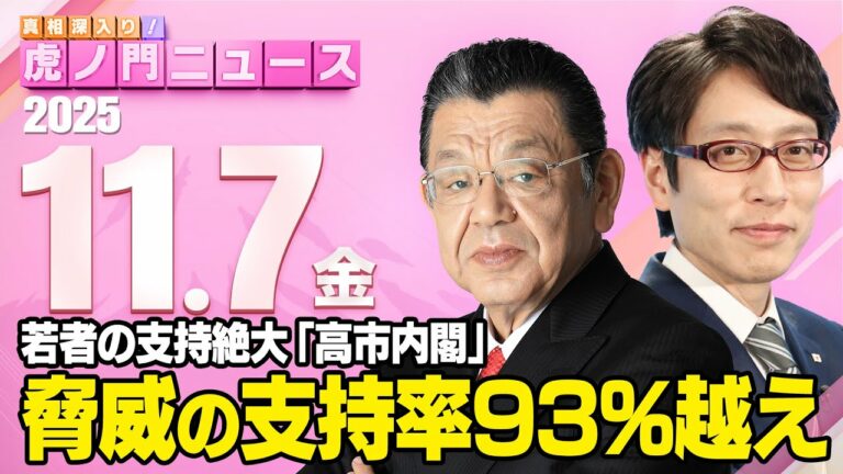 • 【虎ノ門ニュース】脅威の支持率93%越え!高市内閣と若者人気! 竹田恒泰×須田慎一郎 2025/11/7(金)